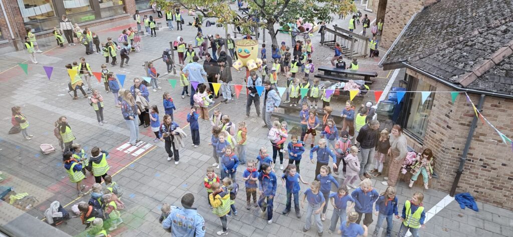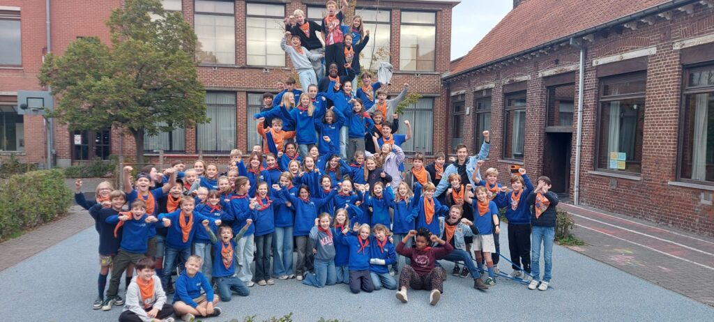 Vandaag kleurt onze school blauw, rood, oranje, … Alle kleuren van KSA en Chiro.